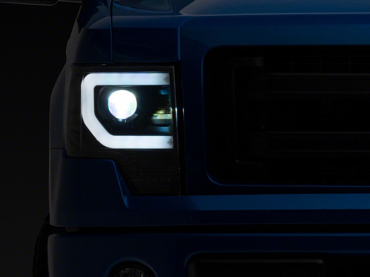 Application. These APEX Series Light Bar Projector Headlights with Sequential Turn Signals, Black Housing, and Clear Lenses are made to fit 2009-2014 Ford F-150 models without factory HID headlights.