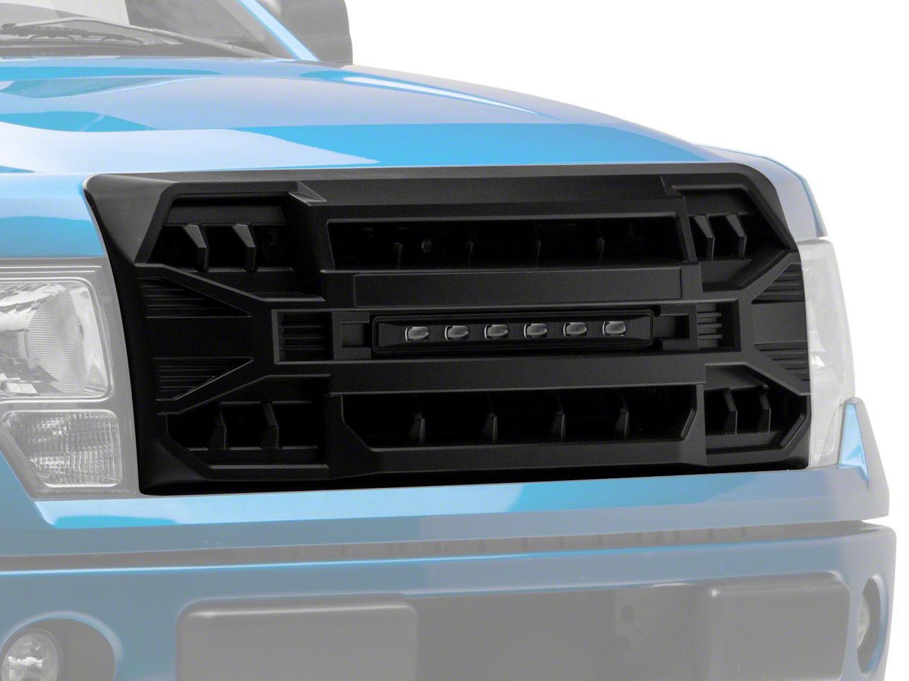 Application. This American Modified Armor Upper Replacement Grille with LED Off-Road Lights is created to fit 2009-2014 Ford F-150 models, excluding Raptors.
