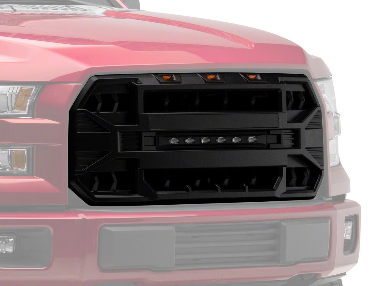 Application. This American Modified Armor Upper Replacement Grille with LED Off-Road Lights in Black fits all 2015-2017 Ford F-150s, excluding Raptor models.