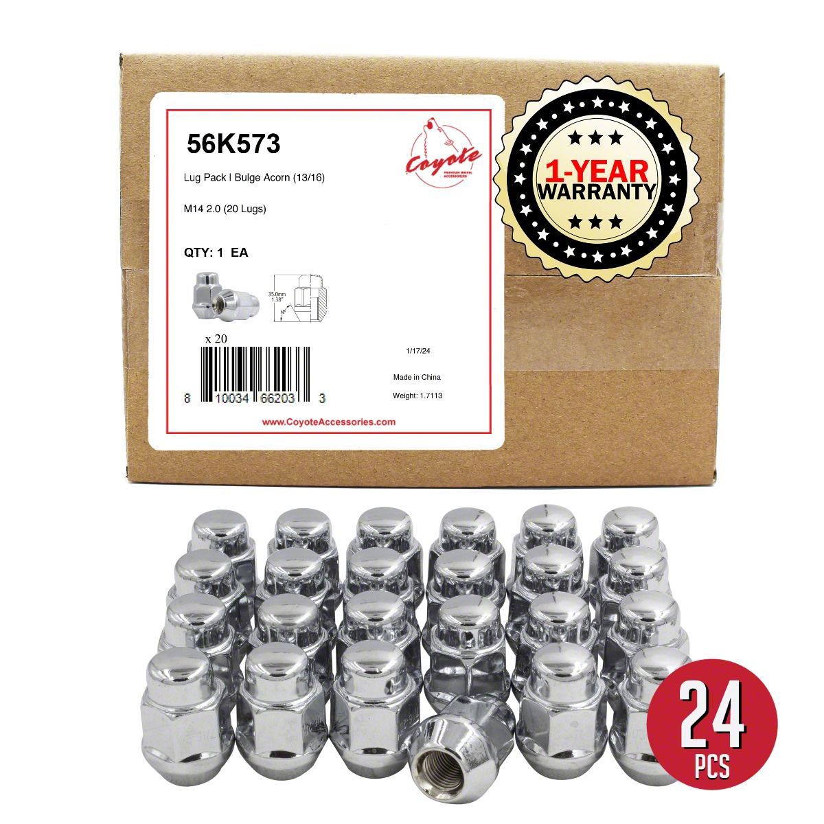 Secure and Stylish Wheel Fastening. The Bulge Acorn Chrome Lug Nut Kit offers a durable and secure solution for mounting wheels. With a 13/16-inch hex size and bulge acorn design, these lug nuts ensure even load distribution for optimal wheel security.