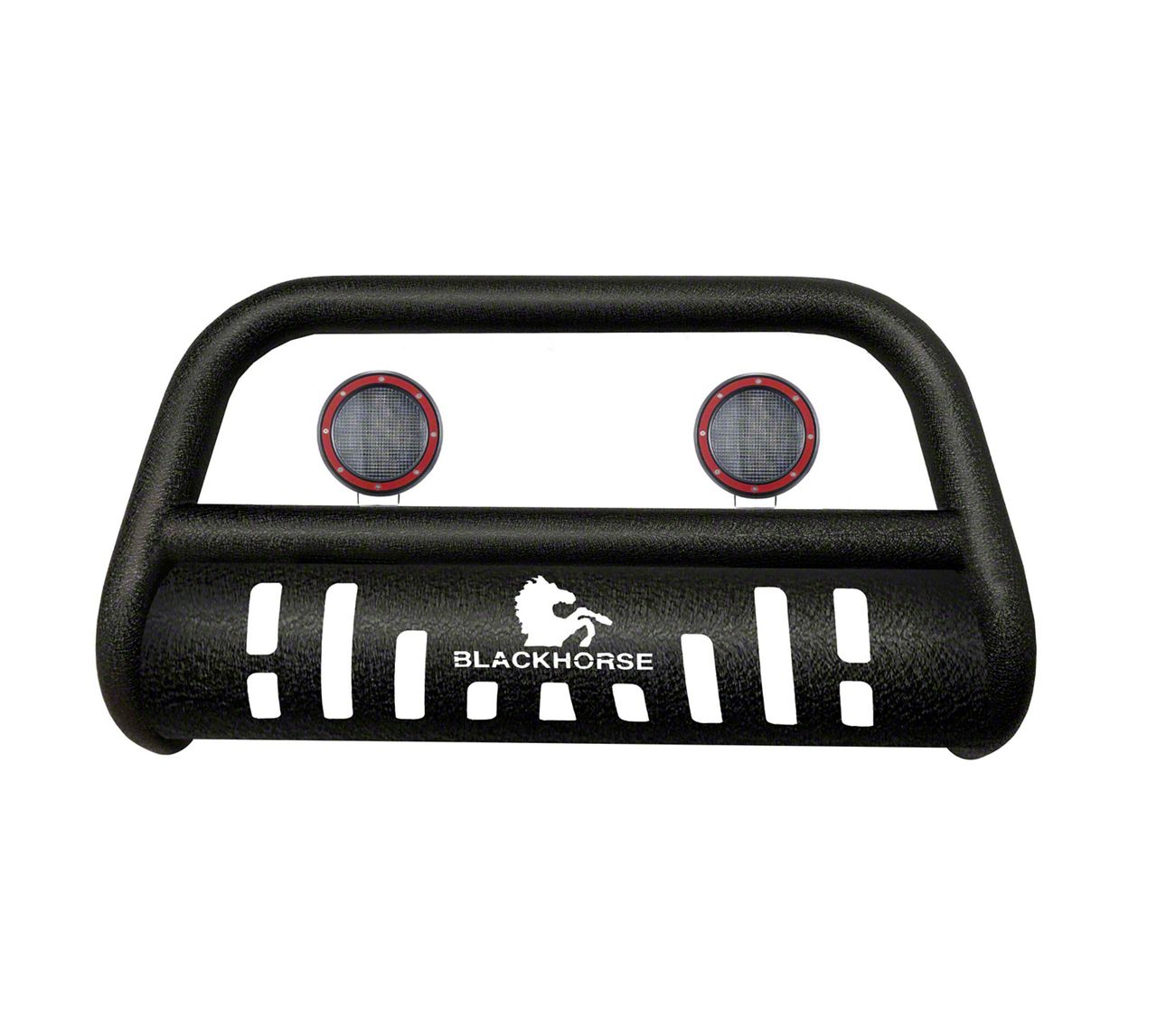 Application. This Bull Bar with 5.30-Inch Red Round Flood LED Lights (Textured Black) fits 2004-2026 Ford F-150 Models (Excluding Powerstroke and Raptor).