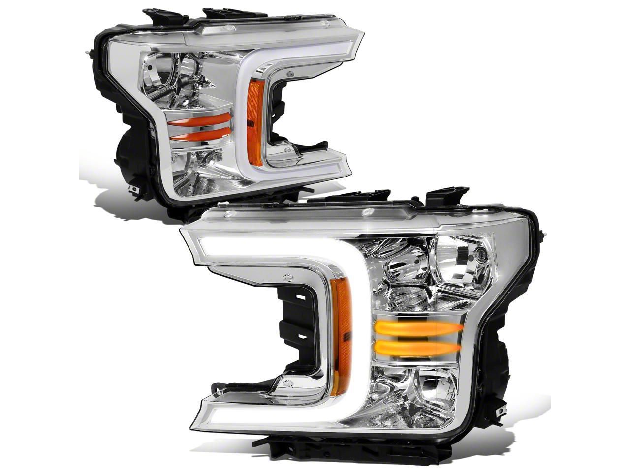 Application. These C-Bar LED DRL Headlights with Amber Corners and Sequential Turn Signals are compatible with all 2018-2020 Ford F-150s with Factory Halogen Headlights.