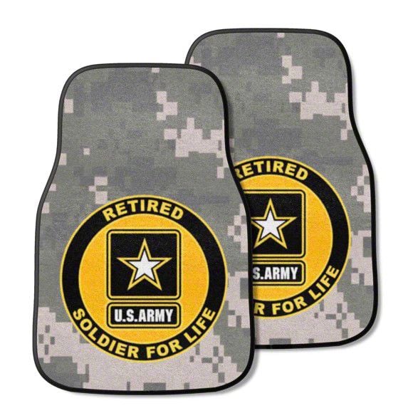 Carpet Front Floor Mats with U.S. Army Retired Logo; Camo (Universal; Some Adaptation May Be Required)