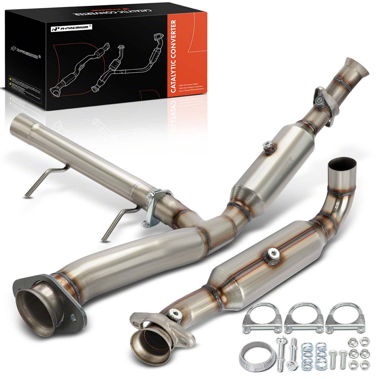 Construction and Features. These catalytic converters feature a raw metal finish and are built to comply with federal emissions standards, making them suitable for use on OBDII vehicles. The converters come with clamps and installation hardware, providing everything needed for a secure and proper fit.
