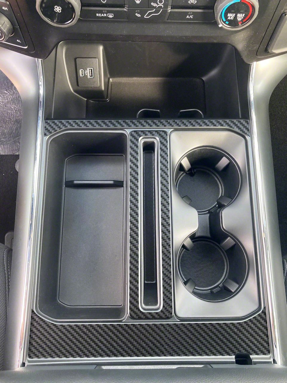 Application. The Center Console Accent Trim; Raw Carbon Fiber fits 2021-2026 F-150 models.