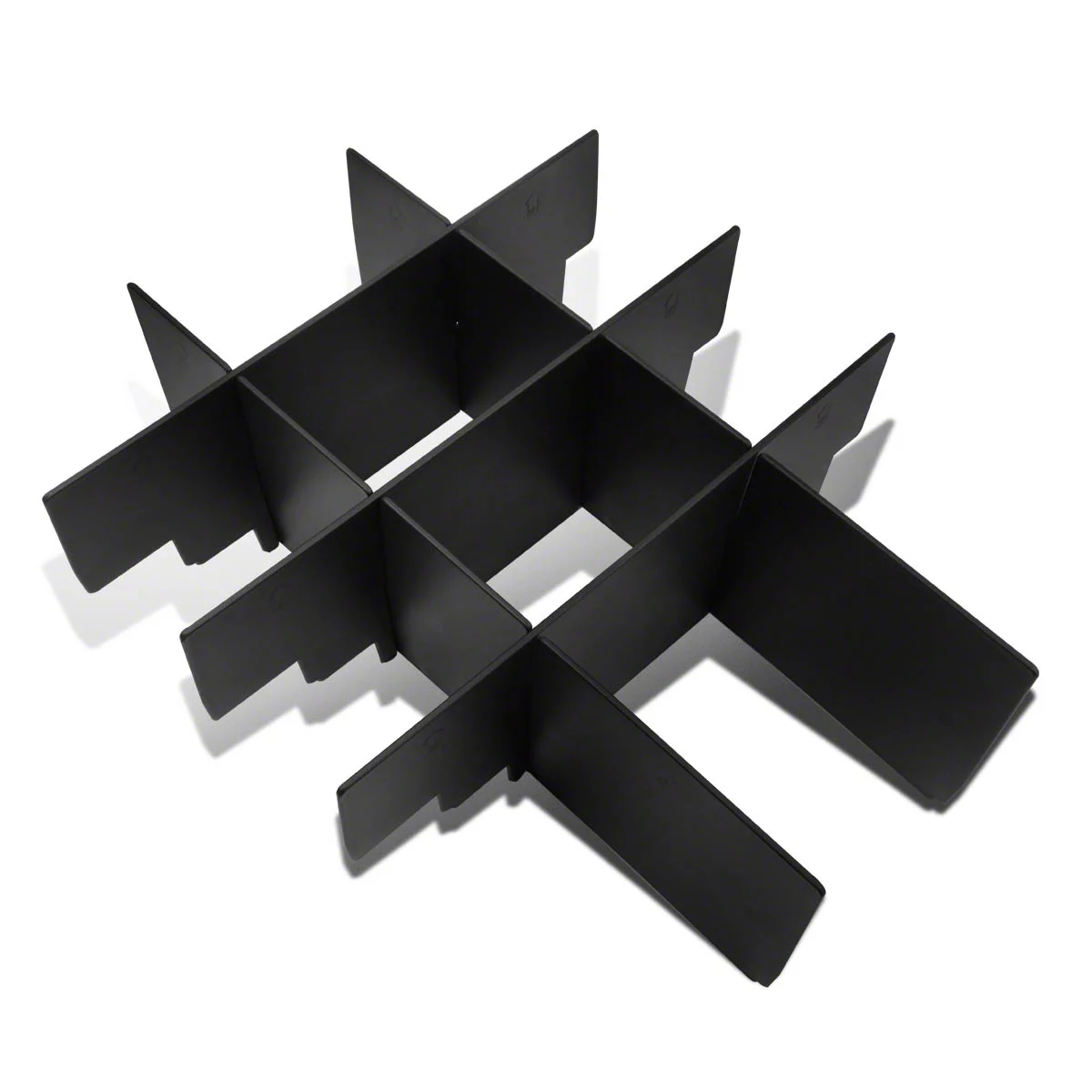 Construction and Appearance. This Center Console Organizer Tray Insert Divider is constructed from ABS plastic and finished in black. It'll blend beautifully with any truck's interior and represents a serious style enhancement.