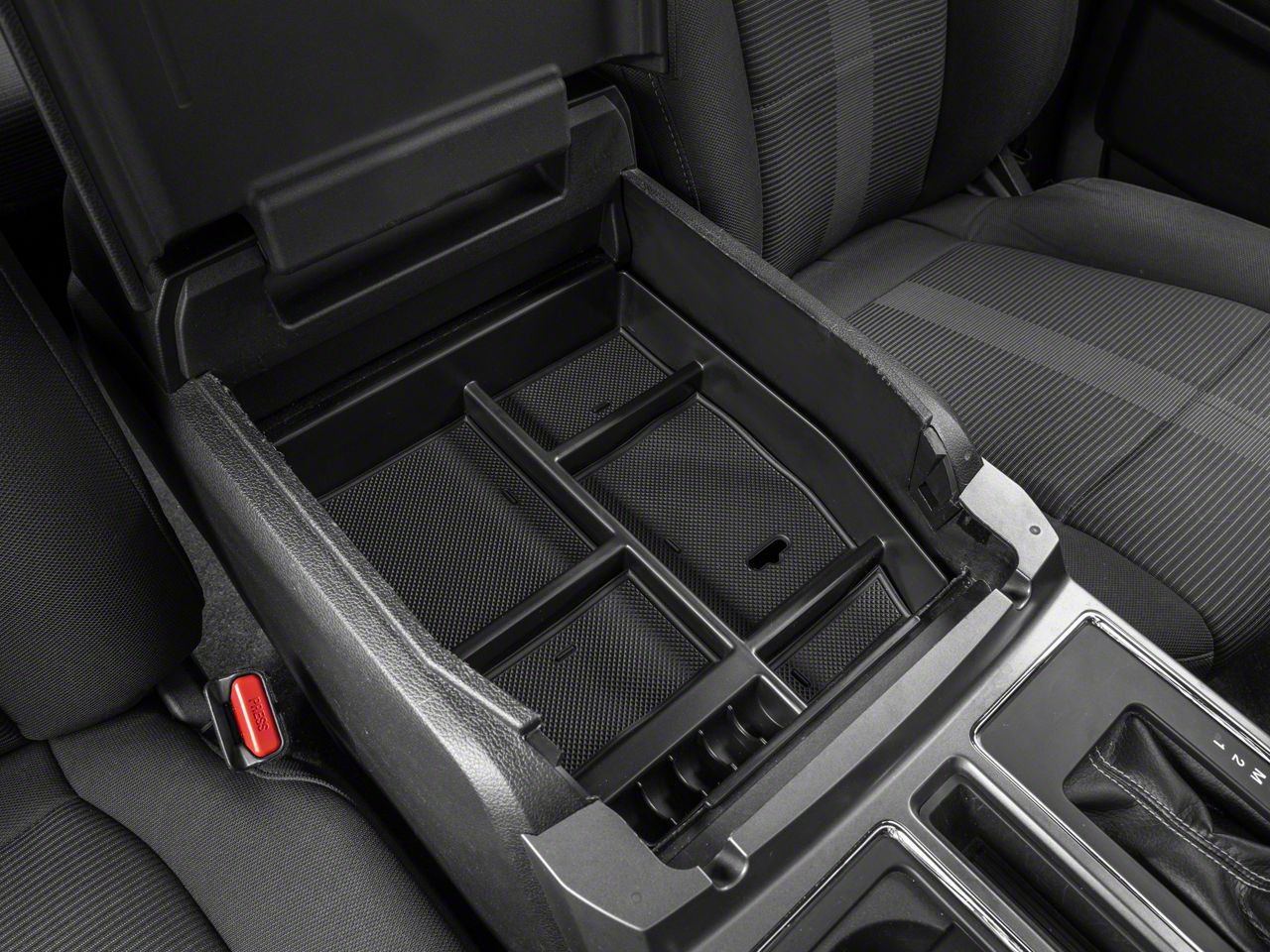 Organize Your Truck. This Center Console Organizer Tray will make life in your F-150 easier. There is plenty of room to store whatever objects you might need kept safe, and, it'll even give your truck's interior a modest style upgrade.