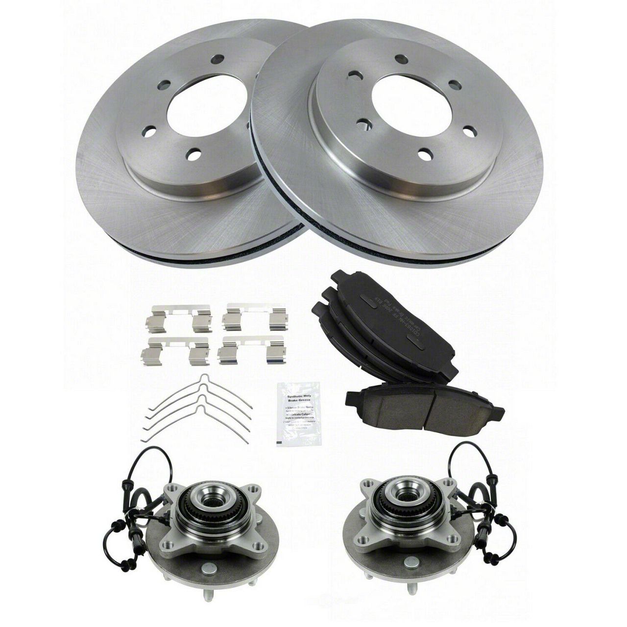 Comprehensive Brake Solution. The Ceramic 6-Lug Brake Rotor, Pad, and Wheel Bearing Kit for the front is designed to fully restore the front braking system of select trucks. This kit combines premium ceramic pads with precision-engineered rotors and durable wheel bearing assemblies to ensure optimal stopping power and wheel stability, enhancing vehicle safety and performance.