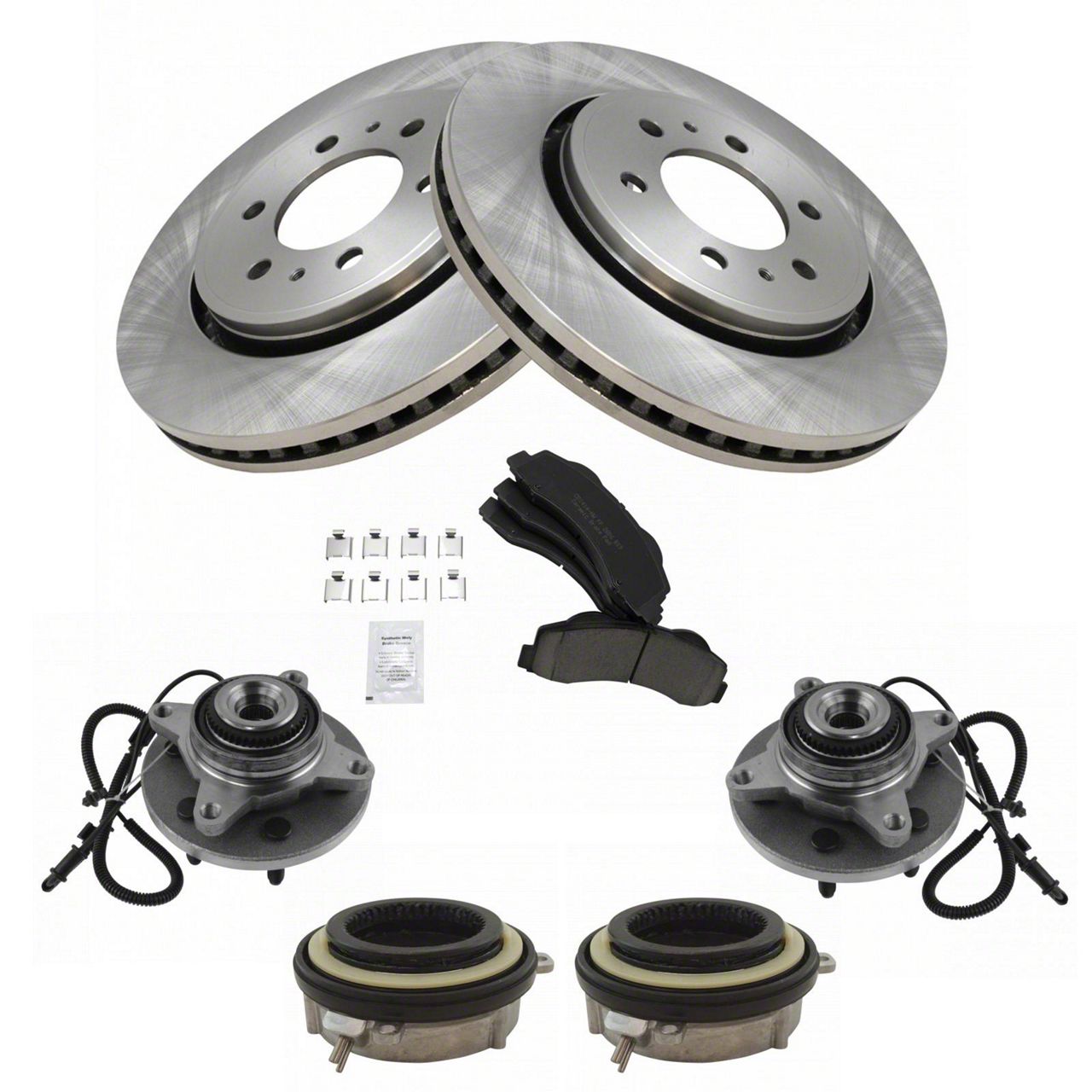 Comprehensive Brake and Hub Replacement Solution. The Brake Rotor, Pad, Hub Actuators, and Wheel Bearing Hub Assembly Kit is designed to restore and enhance your vehicle's braking and wheel performance. Specifically engineered for 2011-2014 4WD Ford F-150 models, this kit provides a complete solution for front-end maintenance and upgrades.