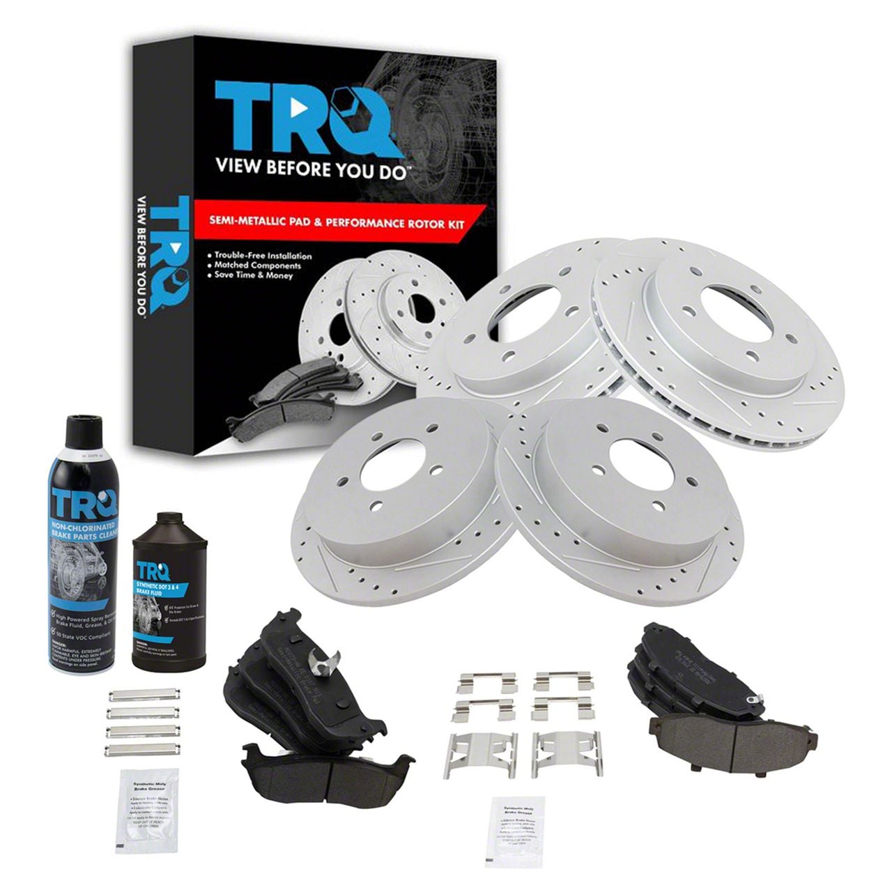 Item DetailsTRQ brake kits are designed to restore your brake system to like-new performance. TRQ brake pads are positive molded, thermal scorched, chamfered, and utilize a multi-layer shim for enhanced performance and service life. TRQ G-coated rotors have long-lasting rust prevention, perfect for wheels with large openings that expose the rotor and rotor hat during daily drives. All products are fit and road-tested in our Massachusetts Rand;D facility to ensure we deliver on our promise of Trusted Reliable Quality.