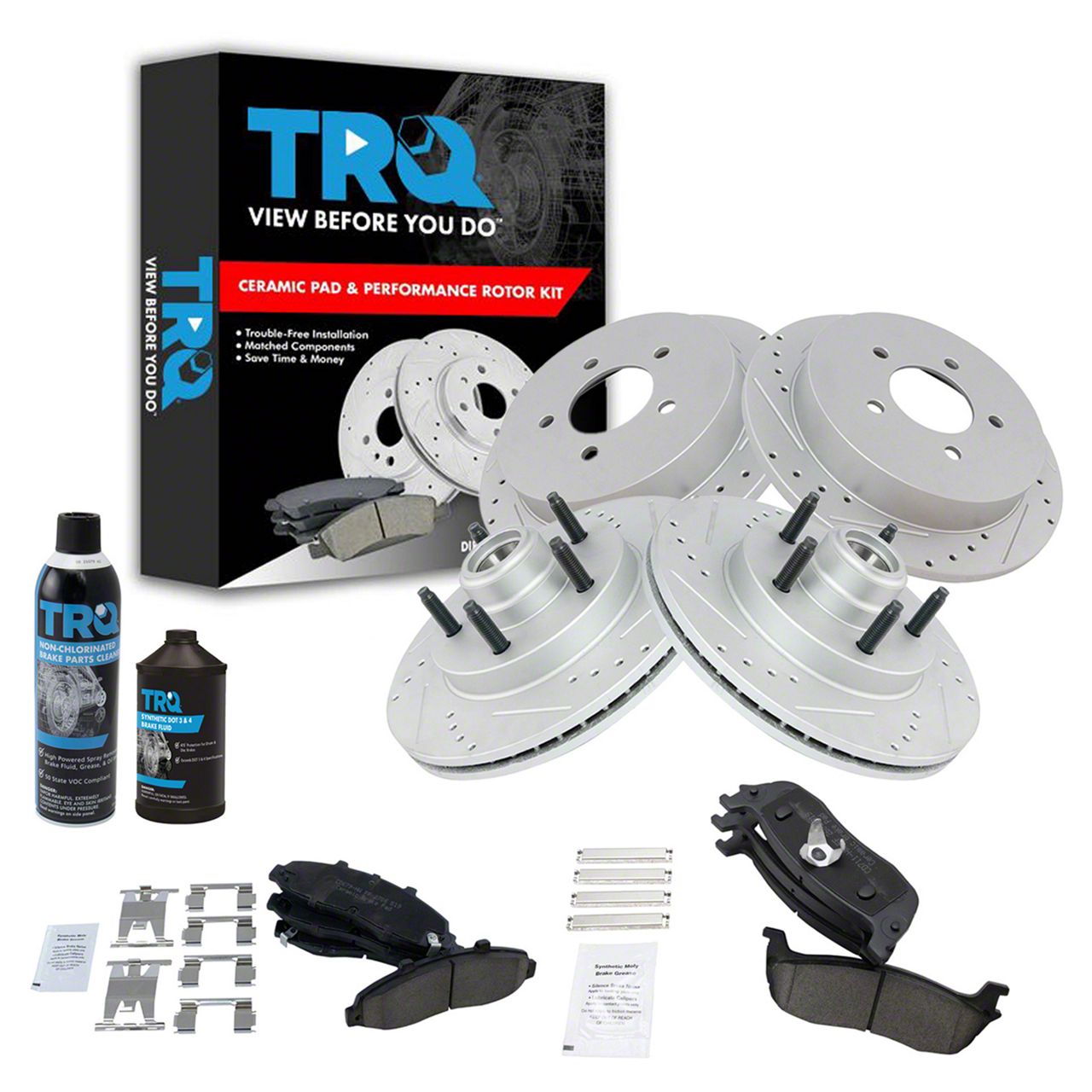 Item DetailsTRQ brake kits are designed to restore your brake system to like-new performance. TRQ brake pads are positive molded, thermal scorched, chamfered, and utilize a multi-layer shim for enhanced performance and service life. TRQ G-coated rotors have long-lasting rust prevention, perfect for wheels with large openings that expose the rotor and rotor hat during daily drives. All products are fit and road-tested in our Massachusetts Rand;D facility to ensure we deliver on our promise of Trusted Reliable Quality.