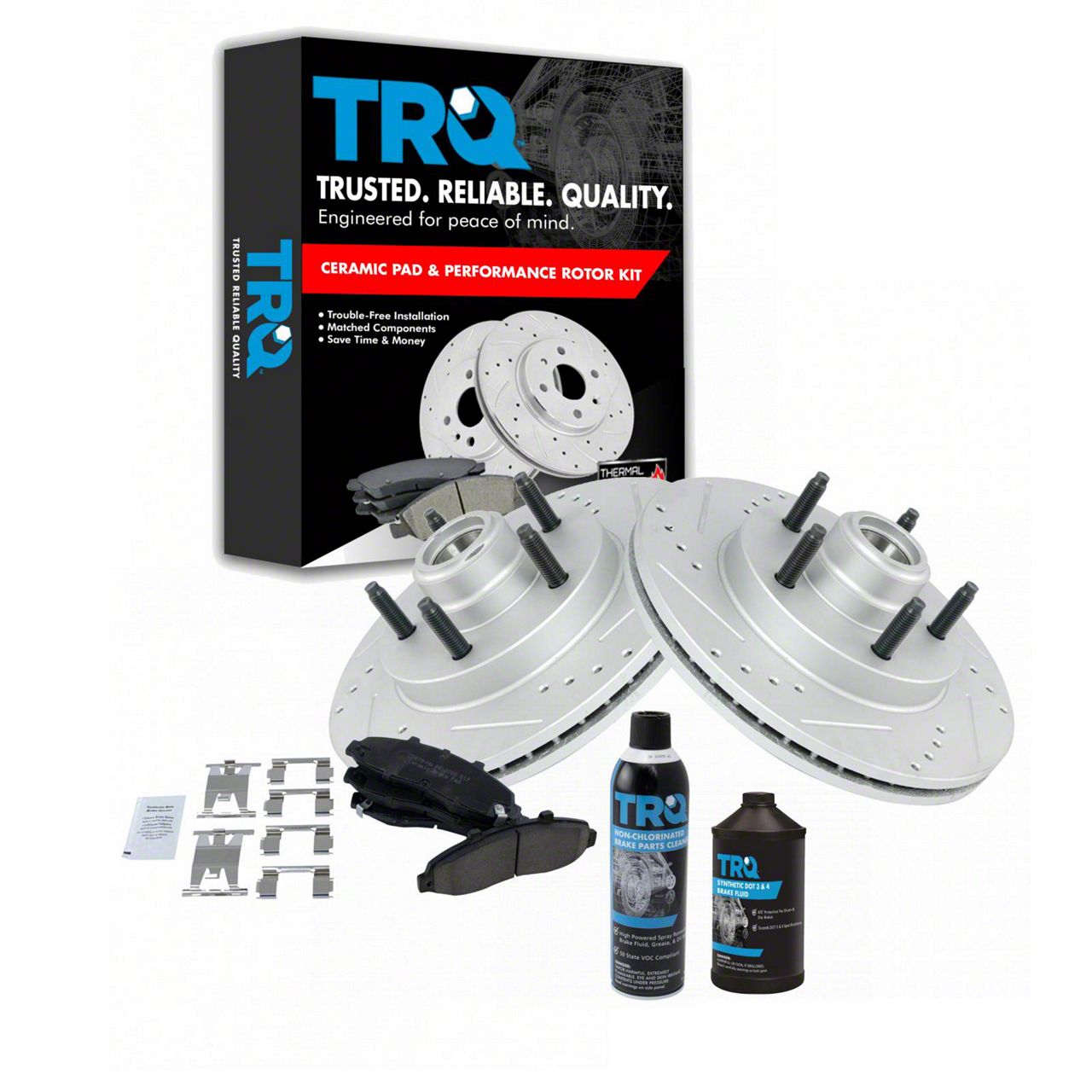 Item DetailsTRQ brake kits are designed to restore your brake system to like-new performance. TRQ brake pads are positive molded, thermal scorched, chamfered, and utilize a multi-layer shim for enhanced performance and service life. TRQ G-coated rotors have long-lasting rust prevention, perfect for wheels with large openings that expose the rotor and rotor hat during daily drives. All products are fit and road-tested in our Massachusetts Rand;D facility to ensure we deliver on our promise of Trusted Reliable Quality.