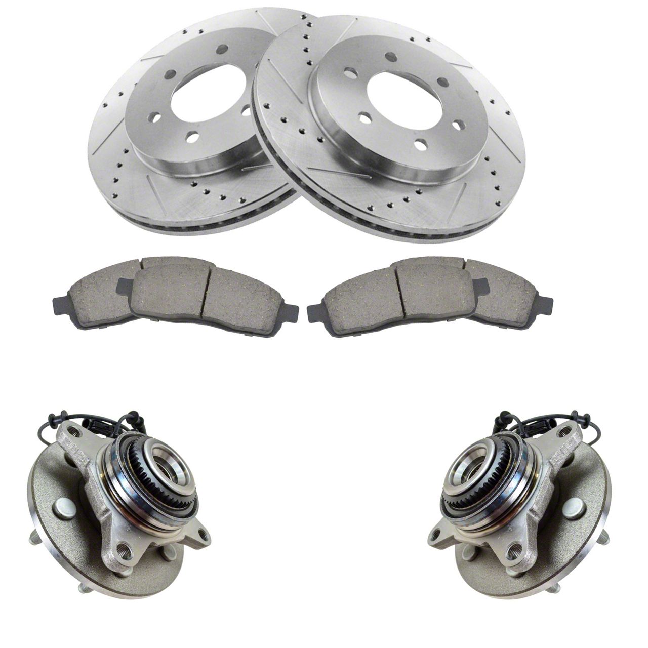 with Wheel Bearings Ceramic Performance Brake Pad & Rotor KitFitmentCompatible with: 2006-08 Ford F150 Truck 4 Wheel Drive with 6 Lug Wheels Front Ceramic Performance Brake Pad & Rotor Kit with Wheel Bearings