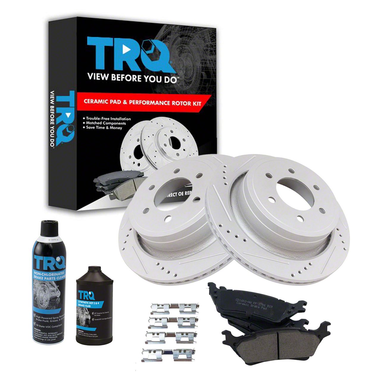 TRQ brake kits are designed to restore your brake system to like-new performance. TRQ brake pads are positive molded, thermal scorched, chamfered, and utilize a multi-layer shim for enhanced performance and service life. TRQ G-coated rotors have long-lasting rust prevention, perfect for wheels with large openings that expose the rotor and rotor hat during daily drives. All products are fit and road-tested in our Massachusetts Rand;D facility to ensure we deliver on our promise of Trusted Reliable Quality.