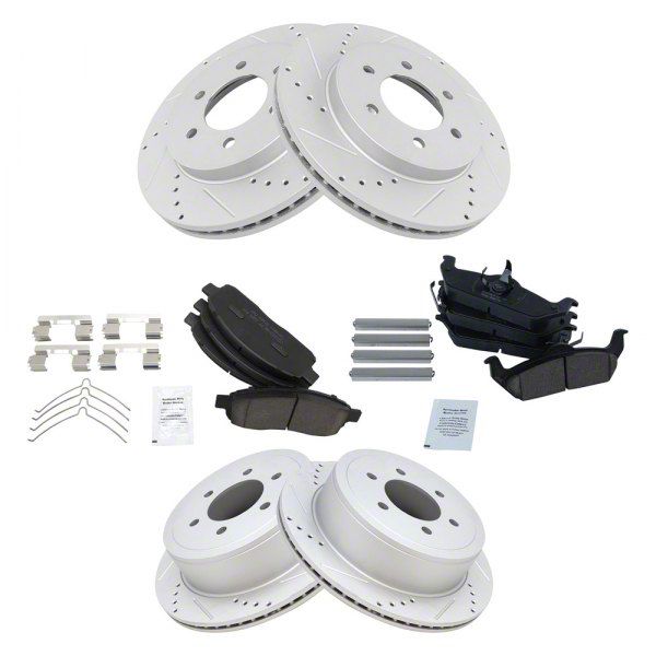 Installation. Putting this Ceramic Performance Brake Rotor and Pad Kit on your 4-Wheel Drive F150 is easy and requires no drilling.