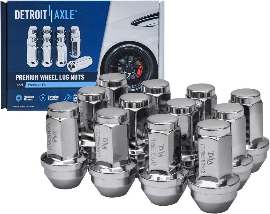 Maintaining Factory Authenticity. The Chrome OE Style Lug Nut Kit is thoughtfully designed to meticulously replicate the exact look and critical dimensions of your vehicle's original equipment lug nuts. This adherence to the OE style ensures that these replacement lug nuts seamlessly integrate with your existing wheels, preserving the intended factory appearance without any compromise in aesthetics.