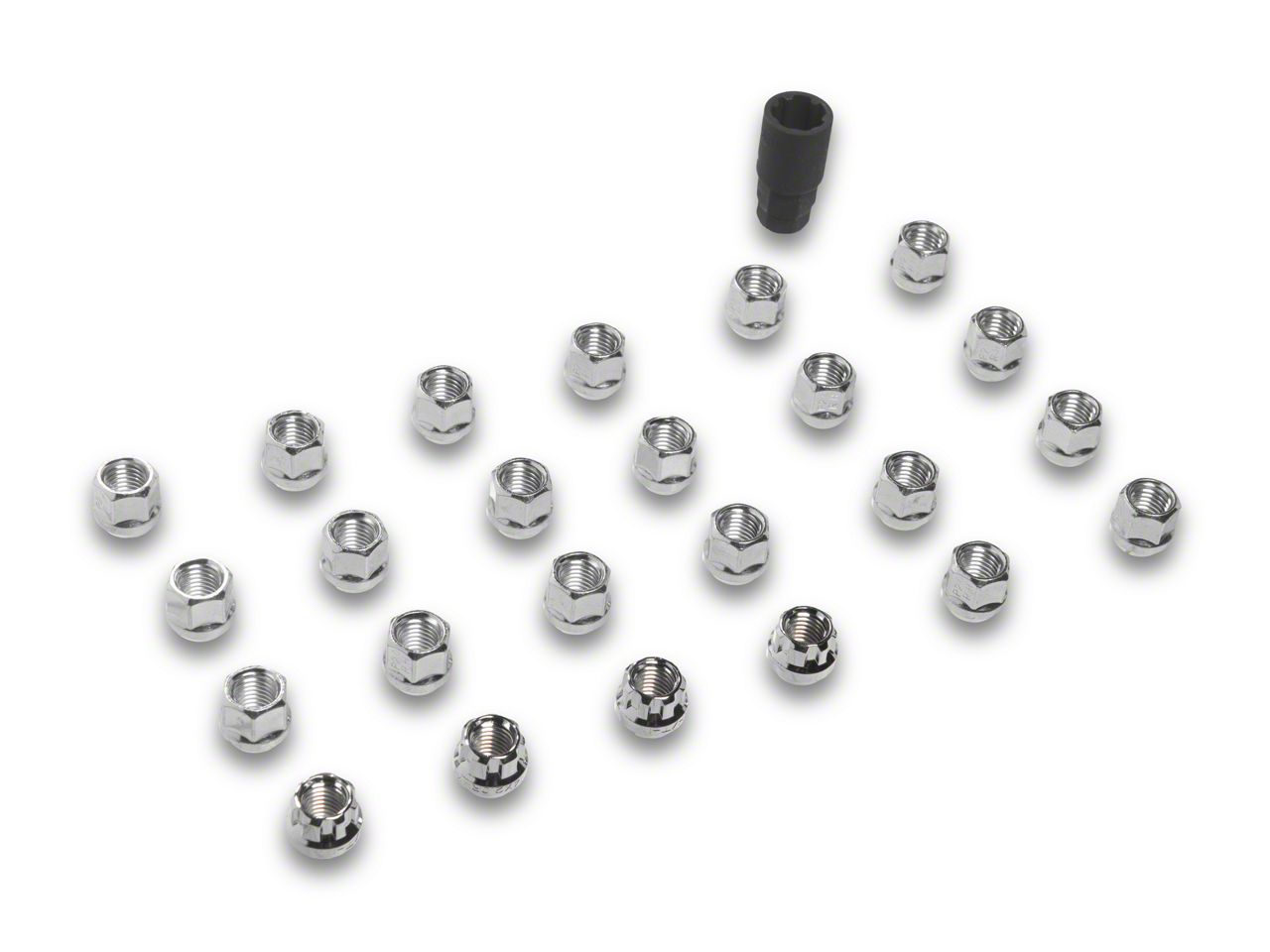 Sleek and Durable Lug Nuts. The Chrome Open Acorn Lug Nuts provide a stylish and secure fastening solution for your Ford F-150. Designed specifically for 2004-2014 models, these lug nuts feature a spiked head style and a chrome finish for an aggressive yet stunning look.