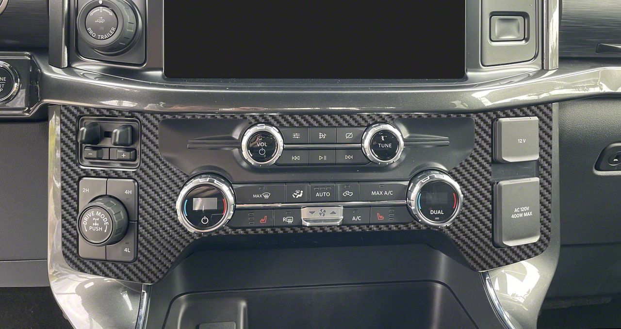 Application. This Climate Control Accent Trim in Raw Carbon Fiber fits all 2021-2026 Ford F-150 models with heated seats.