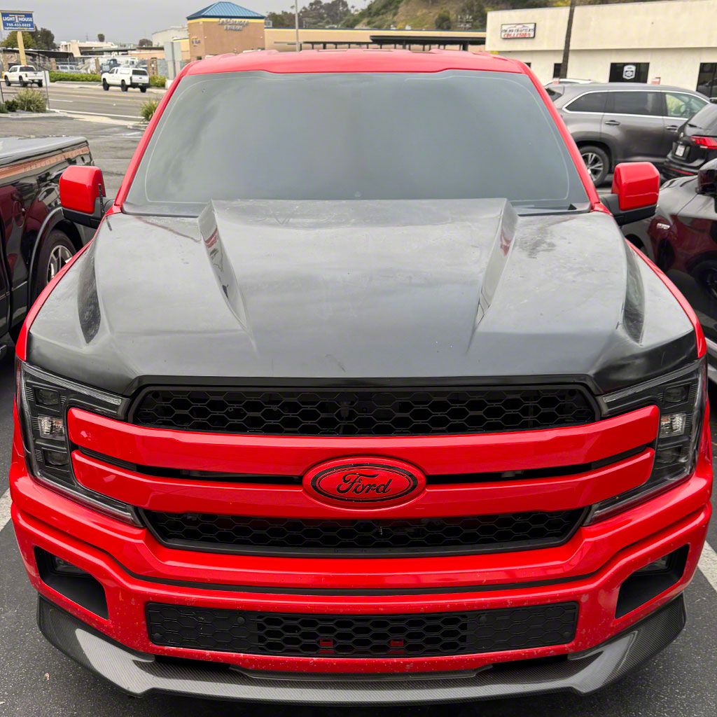 Race-Bred Style Upgrade. The Cowl Hood is engineered for 2015-2020 Ford F-150 models, excluding Raptor models, and brings a muscular, aggressive look along with enhanced under-hood airflow and heat extraction. With its raised 2.5-inch profile and hand-laid black carbon fiber construction, this hood combines modern racing-inspired aesthetics with functional cooling performance. It’s an ideal choice for enthusiasts seeking both a visual upgrade and practical thermal benefits.