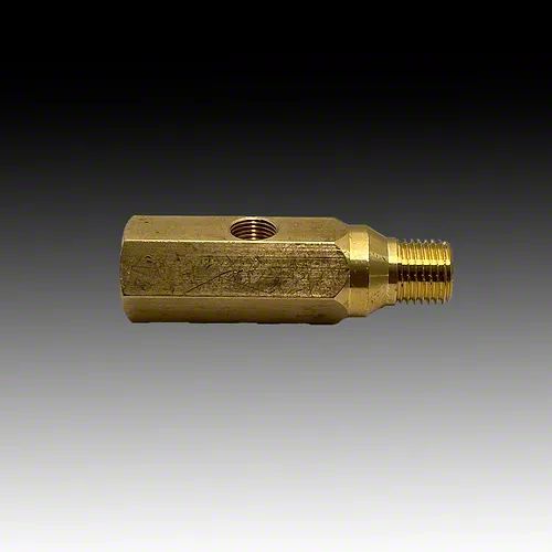 Construction and Appearance. Constructed from robust brass, the Coyote Oil Pressure Adapter is built to last and resist corrosion, even under harsh conditions. Its raw metal finish not only adds an industrial aesthetic but also complements the engine's appearance. The adapter incorporates 1/4 NPTF male threads compatible with Gen 1 and Gen 2 Coyote blocks, along with female threads for the stock sensor and an additional 1/8 inch NPTF port for easy installation of aftermarket gauges.