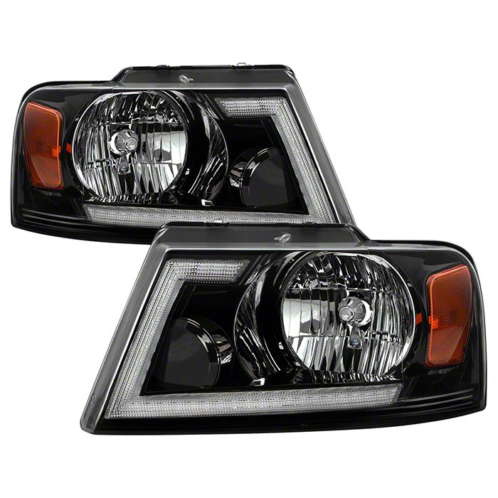 Application. These Crystal Headlights with LED DRL Switchback Turn Signals; Black Housing; Clear Lens fit all 2004-2008 Ford F-150 models.