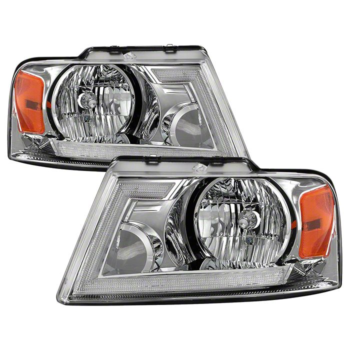 Direct Replacement. Made for the Ford F-150 models, these Crystal Headlights come in pairs with a polished chrome housing and clear lenses. Built to directly replace your broken, cracked, or ruined stock headlights, these headlights include LED DRL switchback turn signals and restore your ride to its stock functionality.