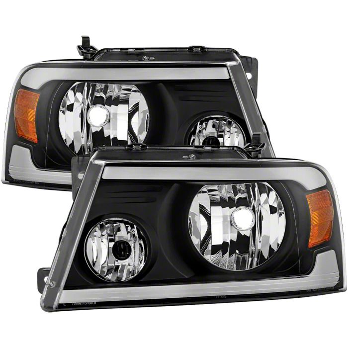 Application. These Crystal Headlights with Sequential Turn Signal LED Strip; Black Housing; Clear Lens fit 2004-2008 F-150 models. By combining sequential LED turn signals with modern housing and lens materials, they enhance visibility, safety, and the vehicle’s front-end style, giving your F-150 a distinctive and functional lighting upgrade.