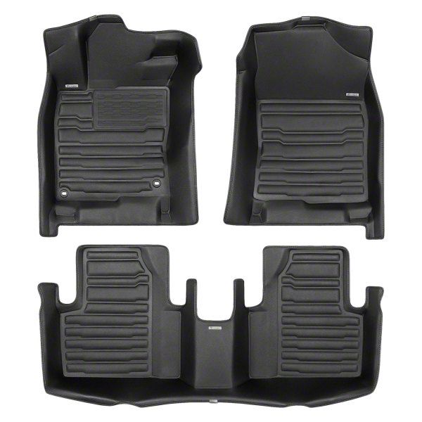 Long-Lasting Quality. The Custom Front and Rear Floor Mats made of high-quality vinyl with a black textured finish that looks great and resists wear and tear.