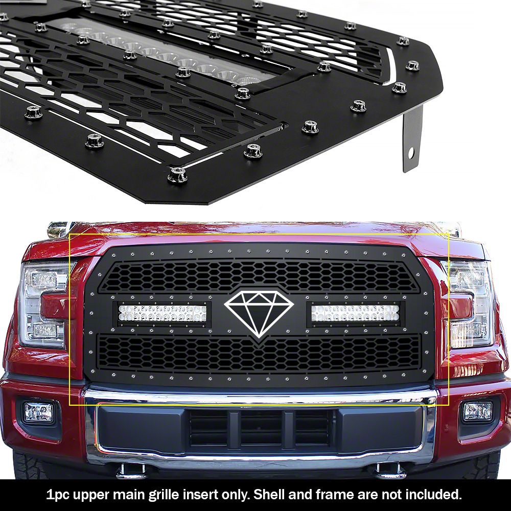 Application. This Double Layer Laser Cut Sheet Upper Replacement Grille; Black fits 2015–2017 F-150 models without forward-facing cameras, excluding Raptor models.