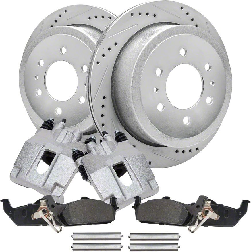 Significant Enhancement. The Drilled and Slotted 6-Lug Brake Rotor, Pad, and Caliper Kit (Rear) are designed to significantly enhance the braking performance of your Ford F-150. This kit ensures efficient heat dissipation and optimal braking power, providing reliable stopping performance in various driving conditions.
