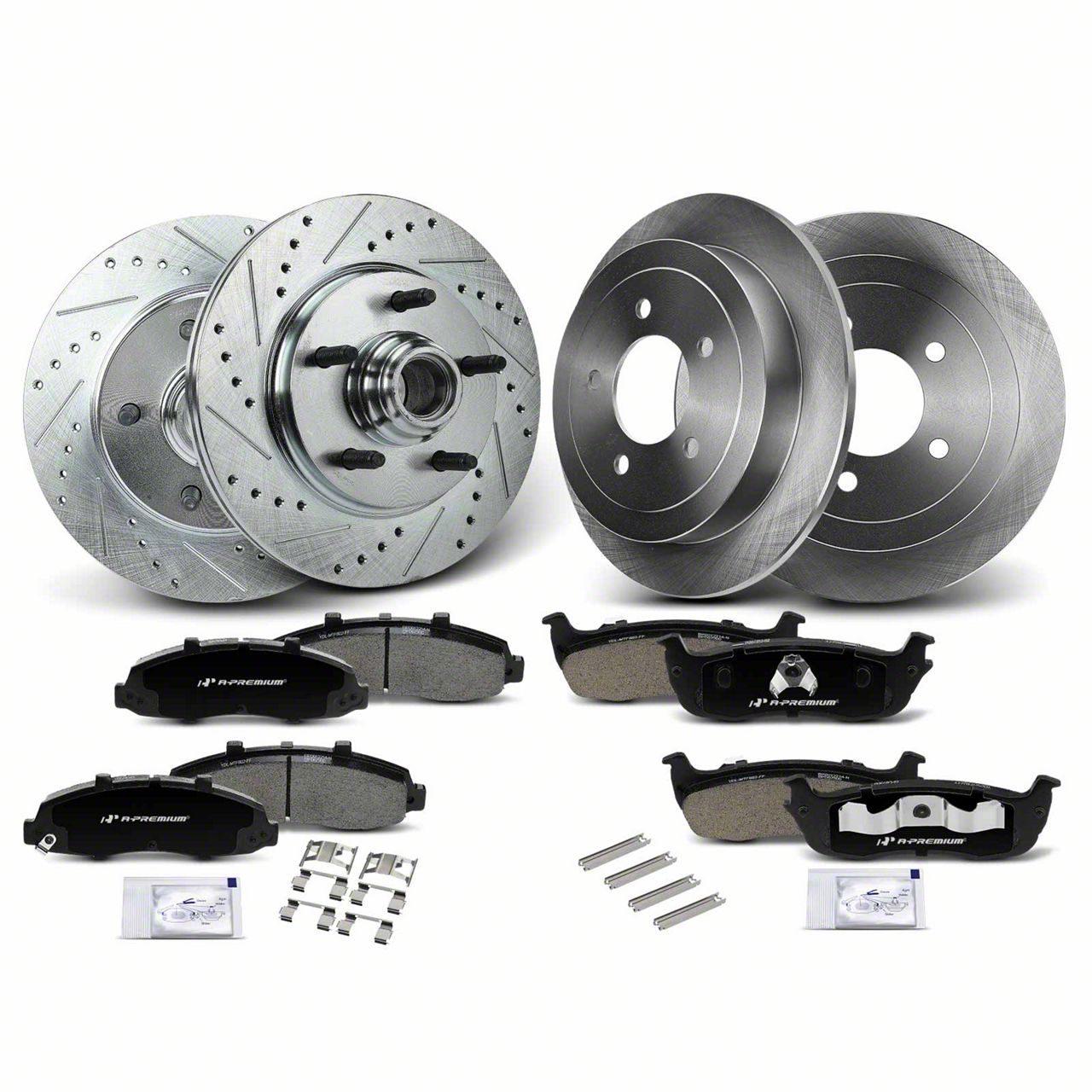 Drilled, Slotted and Solid 5-Lug Brake Rotor and Pad Kit; Front and Rear (00-03 2WD F-150 w/ Rear Disc Brakes, Excluding Lightning)Find parts that fit my vehicle