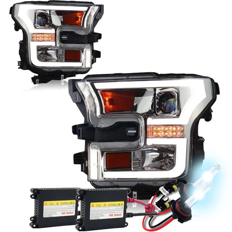 DRL Bar Projector Headlights; Chrome Housing; Clear Lens (15-17 F-150 w/ Factory Halogen Headlights)Find parts that fit my vehicle