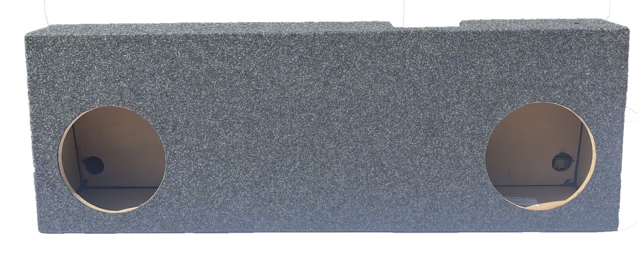 Powerful Sound Upgrade. The Dual 10-Inch Front Firing Subwoofer Box is engineered to deliver deep, powerful bass while maintaining a clean factory appearance. Designed for the F-150 Regular Cab, this enclosure positions the subs front-firing for optimal sound projection and clarity. It enhances your truck's audio system by providing rich low-frequency response without compromising cabin space or comfort.