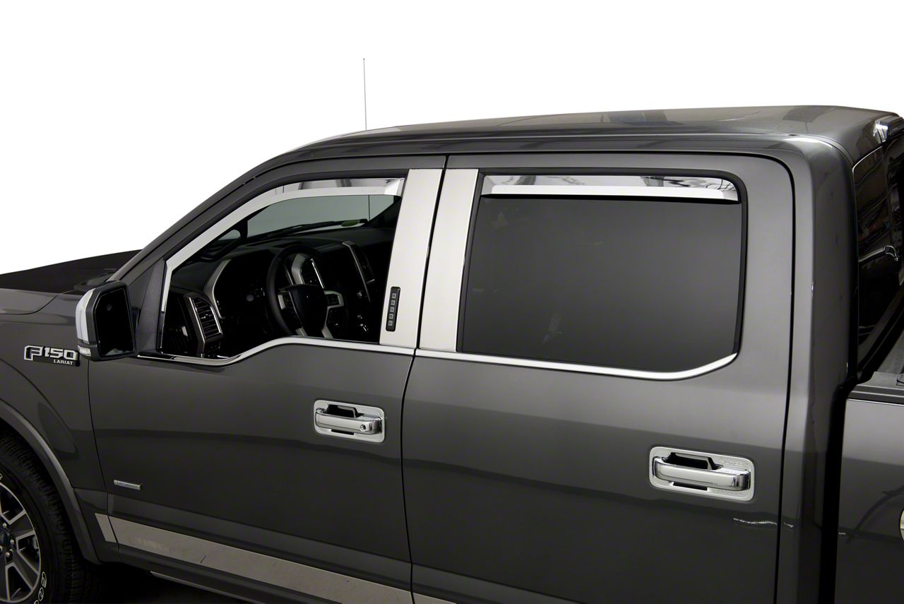 Application. These Front Element Chrome Window Visors with Channel Mount have been designed for use on all the 2021-2026 Ford F-150 models.