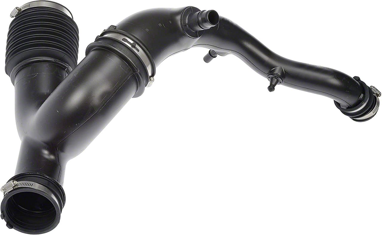 Made With High-Grade Materials. The Dorman replacement air intake hose is made from high-grade molded plastic. While some air intake hoses are created from rubber, plastic is typically more durable. The hose comes with 5 clamps and an integrated emissions port.