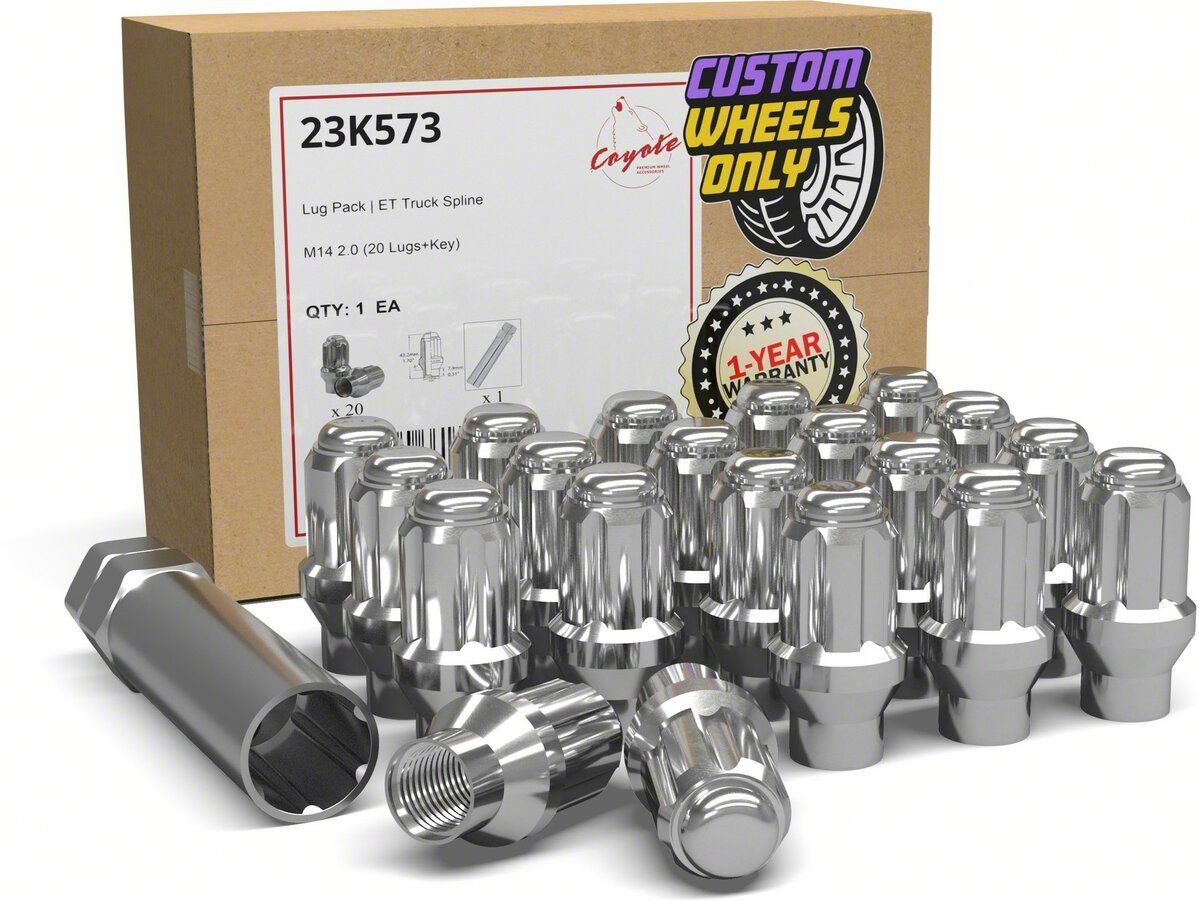 Secure Wheel Fastening Kit. The Lug Nut Kit provides a complete solution for replacing or upgrading the wheel fasteners on your vehicle. Designed for 2000-2003 Ford F-150 models, this kit includes 20 lug nuts crafted to ensure precise fitment and dependable wheel security. Featuring an ET bulge acorn design, the nuts offer a sleek appearance while delivering the structural strength needed for daily driving and load-bearing applications.