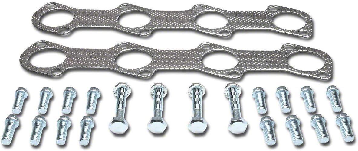 Installation. Remove the old gaskets, clean mating surfaces thoroughly, position the new gaskets, install manifold bolts to the manufacturer’s torque sequence and specifications, then re-attach the down-pipe flange.