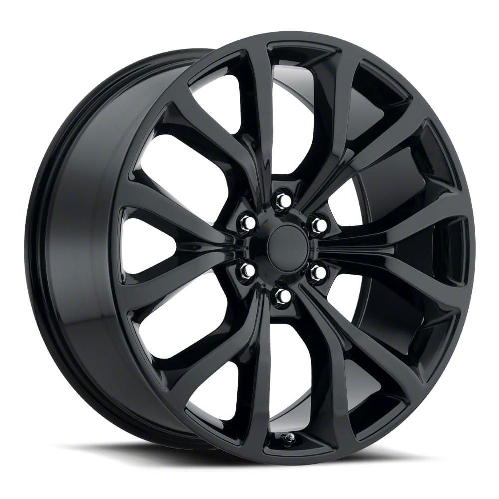 The 22x9.5 Expedition Platinum Replica Gloss Black 6-Lug Wheel; 22x9.5; 44mm Offset is completed in a high-quality gloss black finish, which will be sure to turn heads. For added durability and appearance, there is a durable clear coat that withstands the rigors of the road.