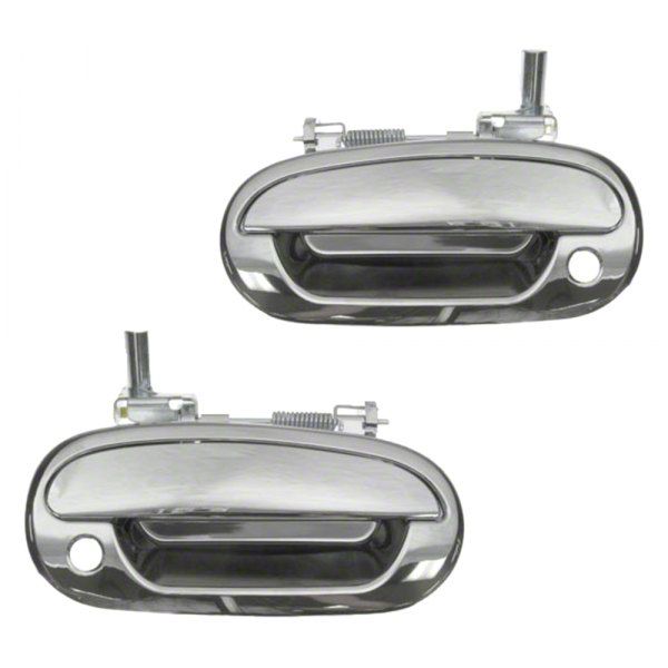 Exterior Door Handle Set. The Exterior Door Handles; Front; Chrome serve as essential replacement parts for your vehicle's front doors, allowing smooth and reliable entry and exit. These handles restore functionality and appearance to the door exterior, maintaining the truck's original style and operation.
