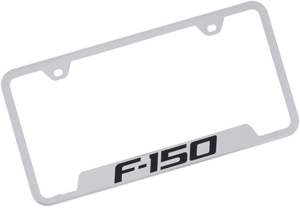 Incredible Style and Protection. Make your truck’s license plate area look less boring by installing this Chrome F-150 License Plate Frame with Universal Fitment. This license plate frame features a crisp, laser-etched “F-150” logo and built with a notched frame design for a more appealing look. Also, this frame’s tough stainless steel build allows it to effectively protect the edges and corners of your license plate.