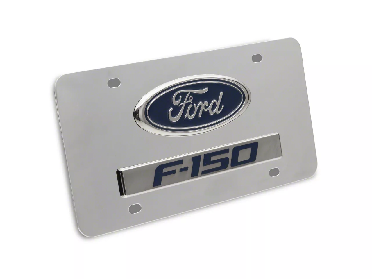 Application. This Chrome on Chrome F-150 Logo License Plate is engineered to universally fit Ford F-150 models.
