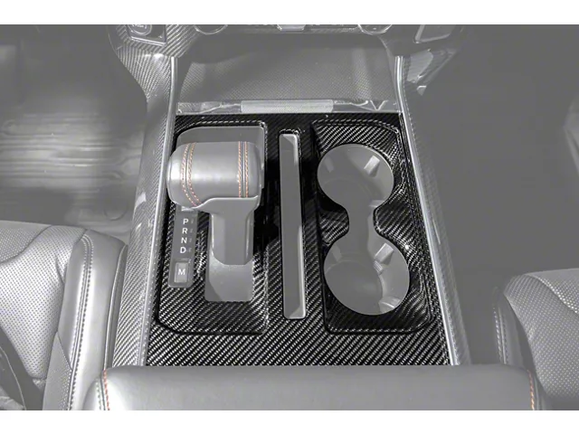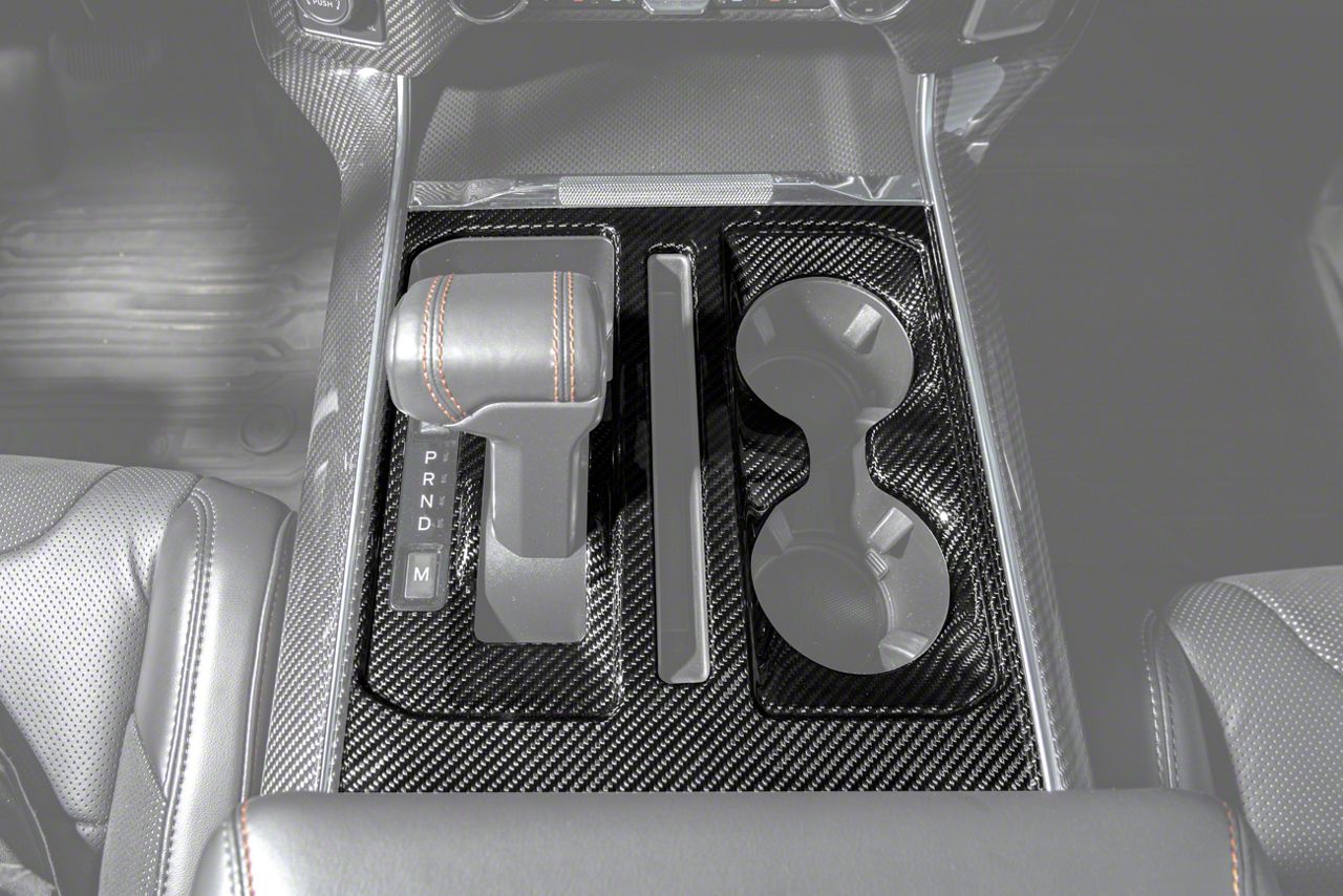 Interior Styling Accent. The Center Console Gear Shift Panel Trim Cover delivers a refined upgrade to the cabin, enhancing the appearance of your gear shift area with a performance-inspired aesthetic. Designed to match factory contours, this cover blends seamlessly with the original interior layout. This product fits 2021–2026 Ford F-150 models, offering a precise fit that updates the console without the need for permanent alterations.