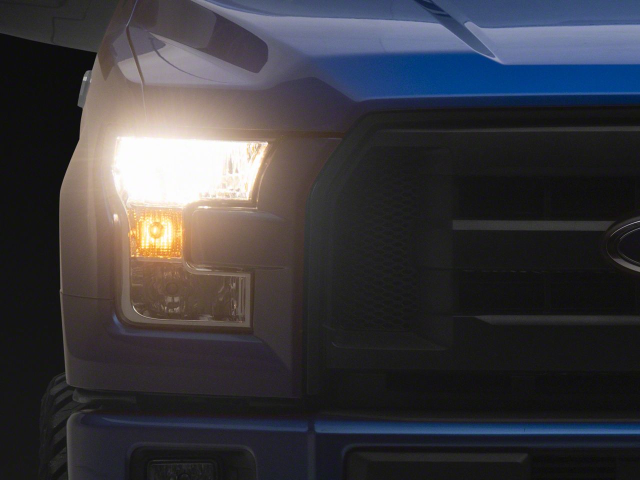 Application. The Factory Style Headlights with Amber Corners, Chrome Housing, and Clear Lens are specifically designed for the 2015-2017 F-150 models equipped with factory halogen headlights.