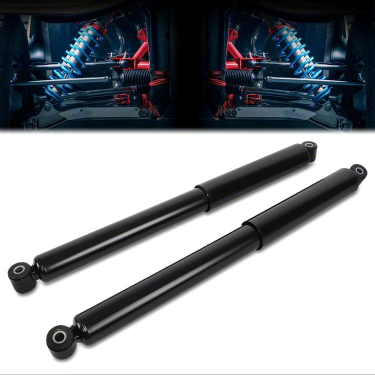 Durable Construction. Constructed from high-quality steel and rubber, these rear shocks are built to withstand the demands of daily driving and varying road conditions. The durable materials ensure long-lasting performance, providing consistent and reliable shock absorption. These shocks maintain the factory ride quality and enhance overall vehicle stability.