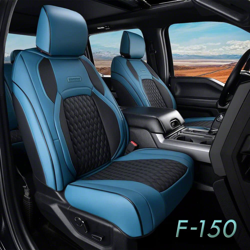 Stylish Protection Upgrade. These Custom Faux Leather Front Seat Covers in blue offer a sleek and modern way to protect your F-150's interior while enhancing cabin aesthetics. Designed for an integrated, full-coverage fit, they shield your factory seats from spills, scratches, and wear while maintaining full airbag compatibility for safety.