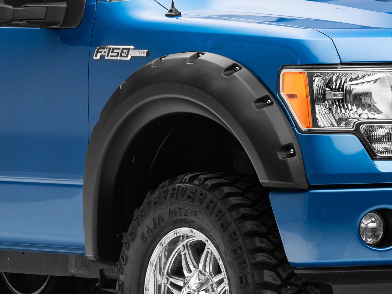 Extra Protection. A must have upgrade for any F-150 that spends a good amount of its time at the work site or out on the trail is a set of Pocket Rivet Style Fender Flares. These Fender Flares will give you the additional protection you need to shield your F-150's body and paint from stones and debris that get kicked up by your tires. These great looking Fender Flares feature a wide pocket rivet design that will enhance your 2009-2014 F-150's rugged good looks. Best of all, the wider width will provide you with the additional tire coverage needed when you go to install an oversized set of wheels and tires.