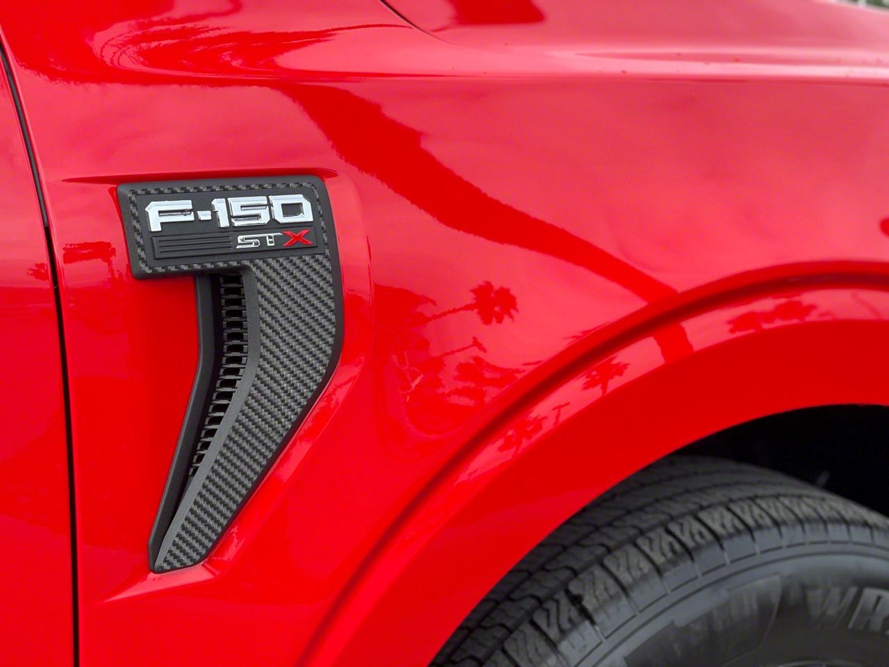 Application. The Fender Vent Accent Trim in Raw Carbon Fiber suits all 2021-2026 Ford F-150 models (excluding Raptors).