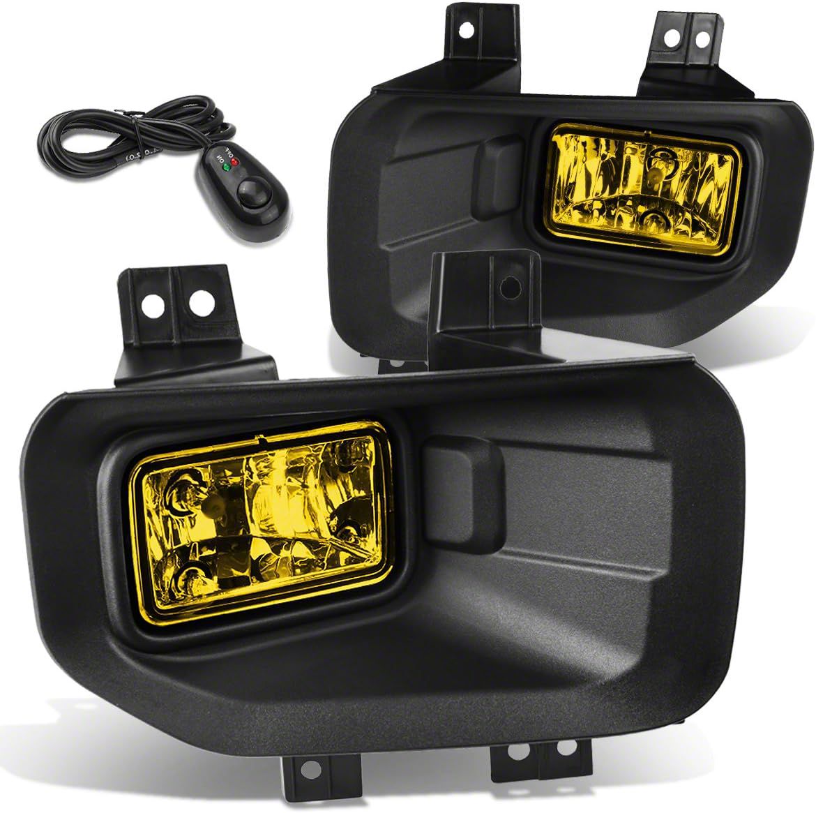 Construction and Features. Crafted with a textured black finish housing and a transparent amber lens, these fog lights provide a rugged and functional upgrade. Equipped with H10 bulbs, they deliver reliable performance while meeting SAE and DOT standards for safety and compliance. The included switch adds convenience and control for seamless operation.