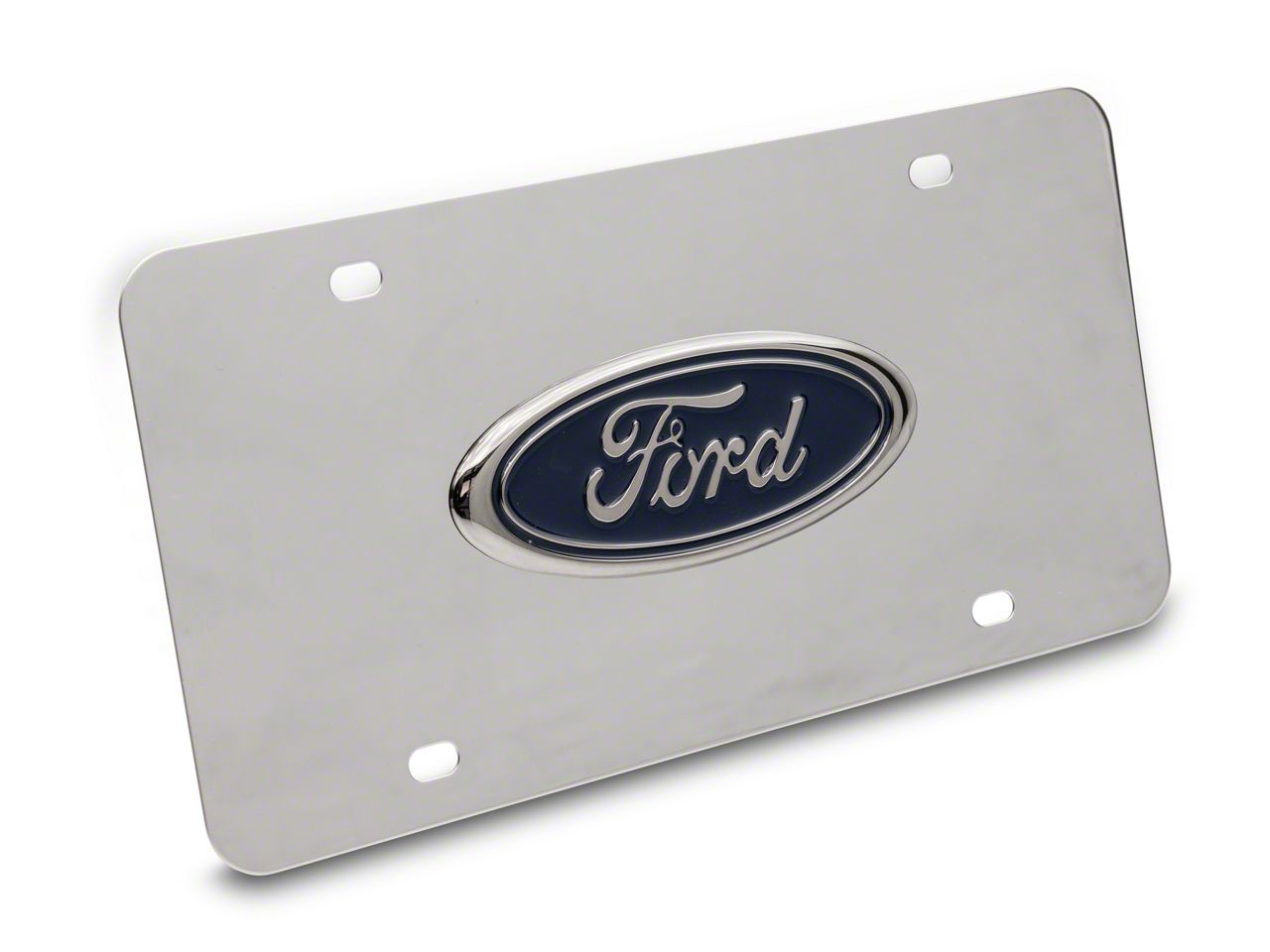 Durable Quality. This Ford Logo License Plate is designed to add a sleeker look to your Ford F-150. The plate is mainly plastic with a premium-level chrome plating. On the other hand, the logo is an injection-molded ABS electro-plated plastic with an epoxy fill to ensure lasting durability and impression.