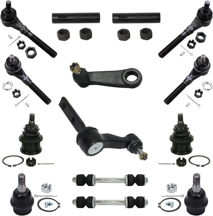 Complete Front Suspension Upgrade. This Ball Joint Kit is designed to restore and enhance the front-end stability of your Ford F-150. Featuring a comprehensive set of components, including idler arms, pitman arms, sway bar links, tie rods, and tie rod adjusting sleeves, this kit ensures precise steering and improved suspension performance.
